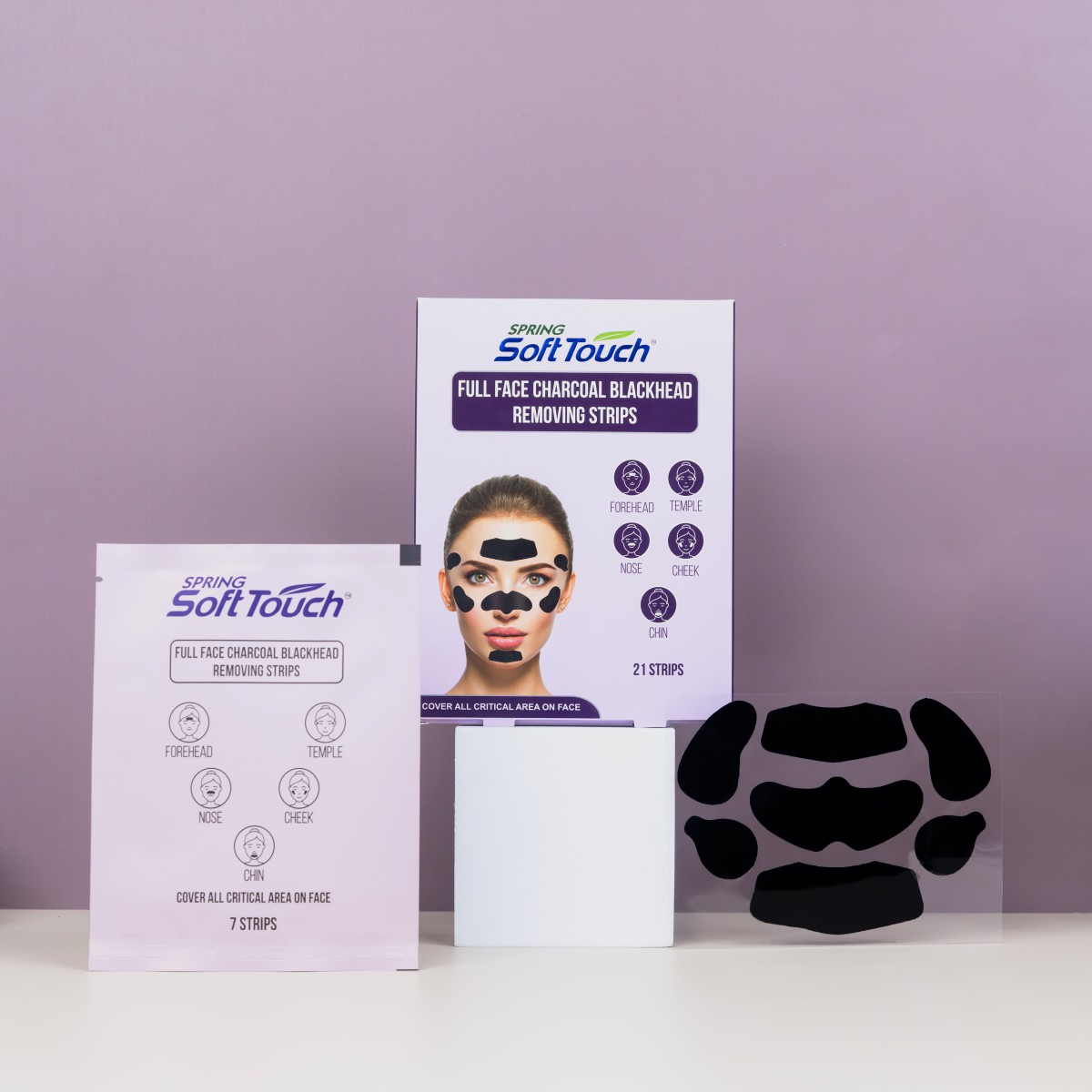 Spring SoftTouch Full Face Charcoal Blackhead Removing Patch is designed to target all blackhead-prone areas at once. Infused with activated charcoal, it lifts away dirt, blackheads, and excess oil in one satisfying peel while detoxifying and tightening pores. Suitable for the nose, cheeks, forehead, and chin, these patches leave your skin visibly smoother, refreshed, and healthier-looking, providing an easy and effective at-home cleansing solution.