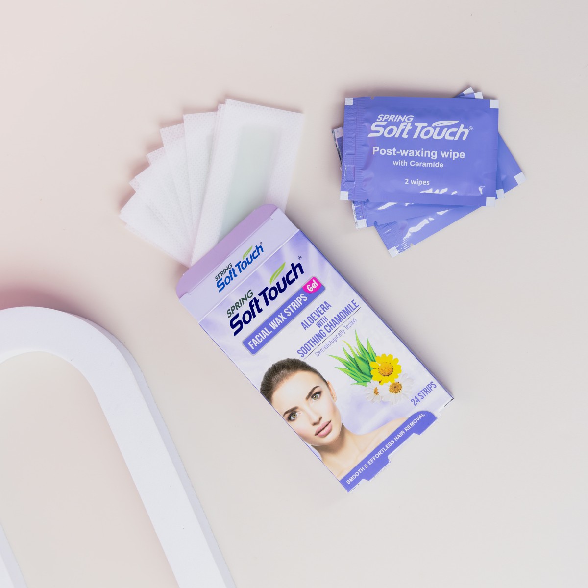 Spring SoftTouch Facial Gel Wax Strips with Aloe Vera and Soothing Chamomile gently remove unwanted facial hair, providing smooth, long-lasting results. Specially designed for delicate areas like the upper lip, chin, and cheeks, these strips nourish and calm the skin while delivering salon-quality hair removal at home. They offer an easy, effective, and mess-free solution for maintaining soft, hair-free facial skin.