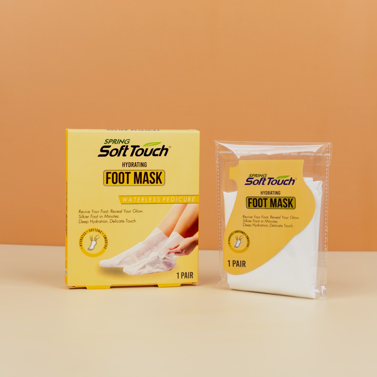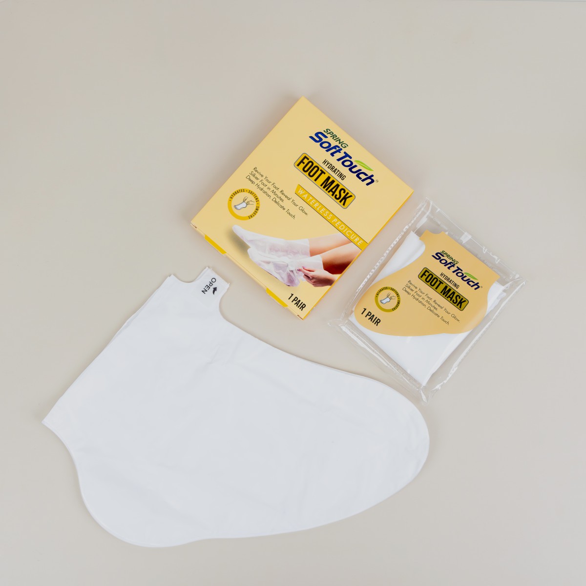 Spring SoftTouch Hydrating Foot Mask delivers a spa-like experience at home, gently exfoliating dry, cracked heels while softening rough skin and removing dead cells. Infused with natural ingredients, it restores moisture and leaves feet silky-smooth and refreshed. The easy-to-use, mess-free sock-style design makes it perfect for tired feet or weekly pampering—just slip on, relax for 15 minutes, and reveal soft, nourished soles.